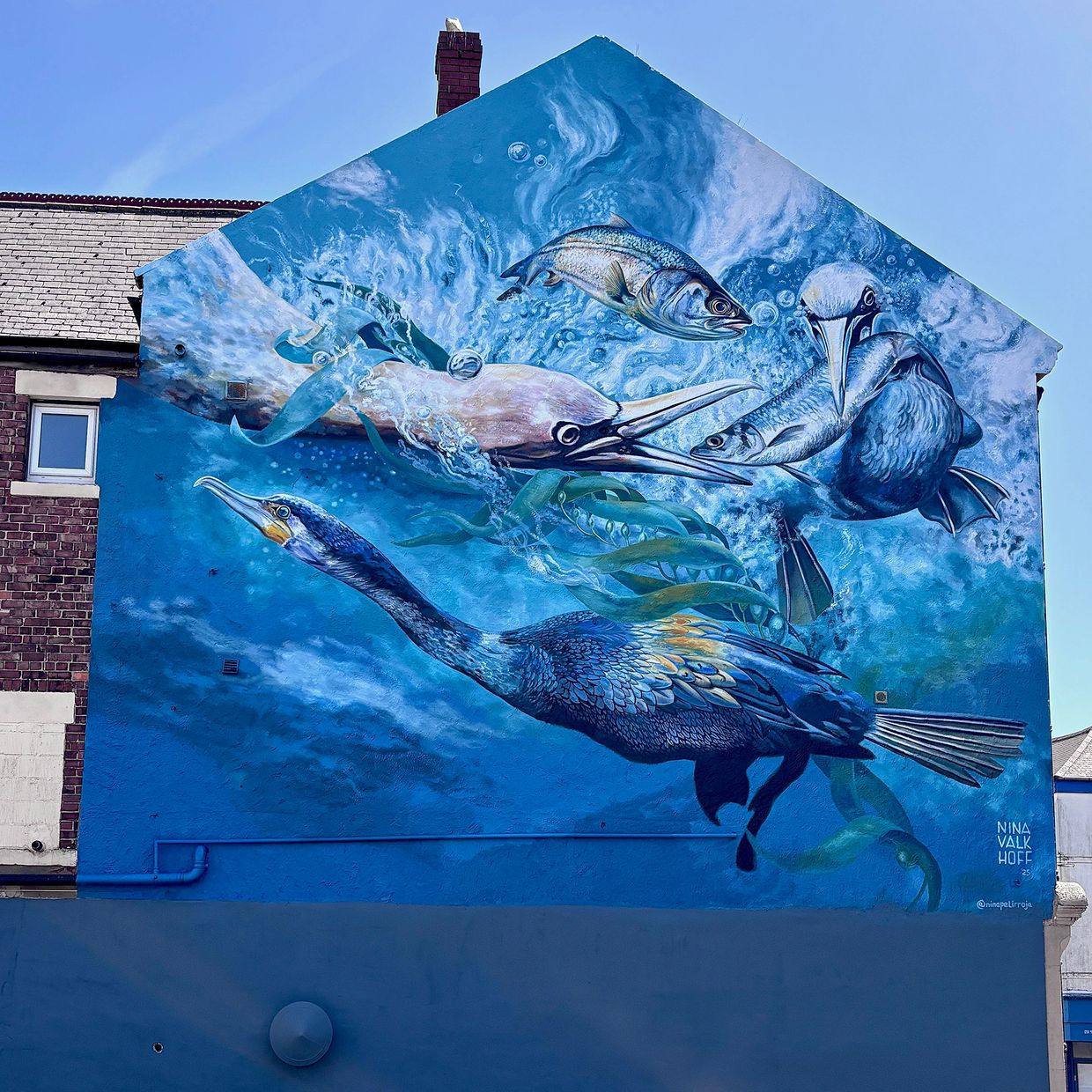 Taking a bold leap into the imagination, this mural immerses us in an underwater world where the River Tyne meets the North Sea.